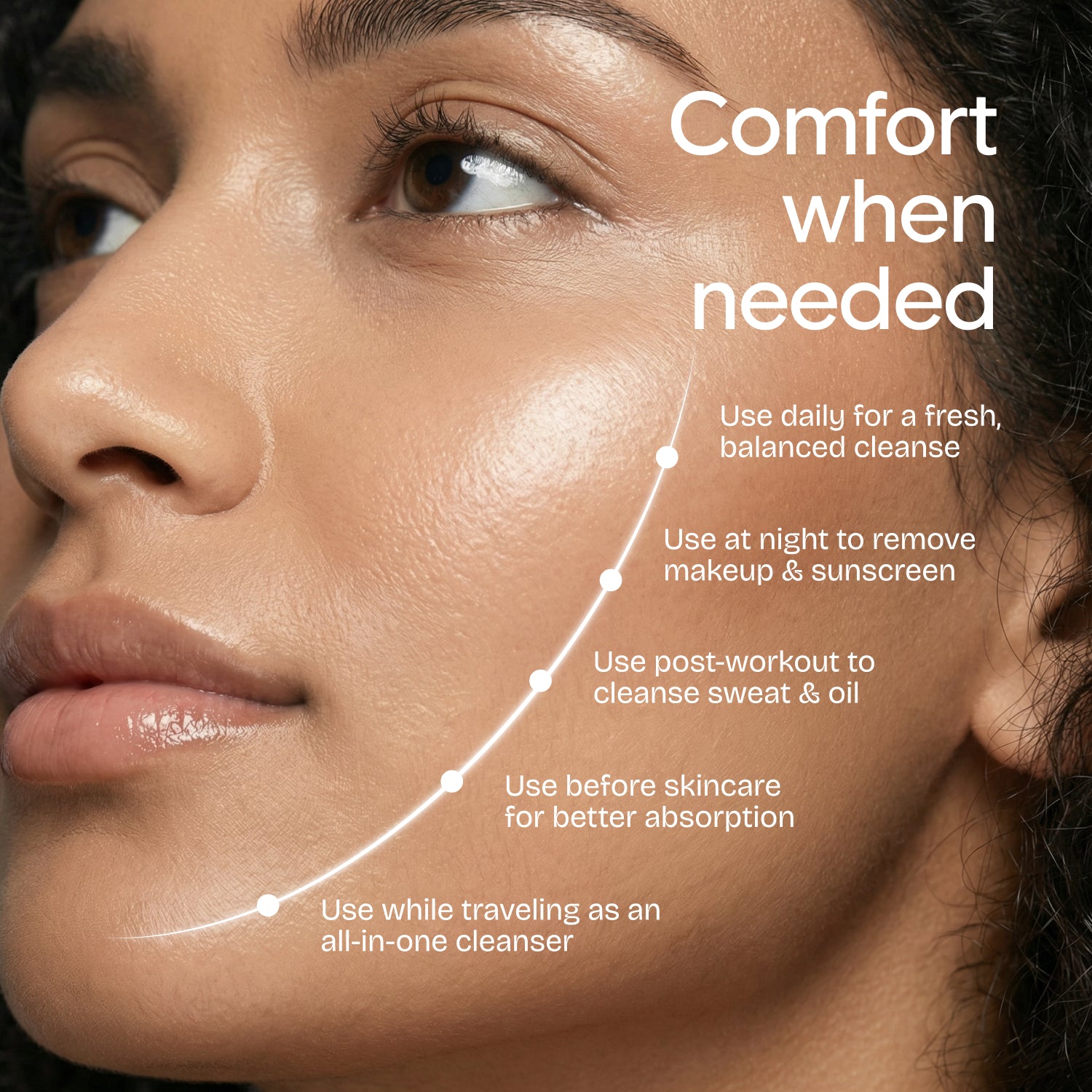 This one-step double cleanse instantly melts makeup and pollution , repairing your barrier to reveal a clear, effortlessly glowing canvas.